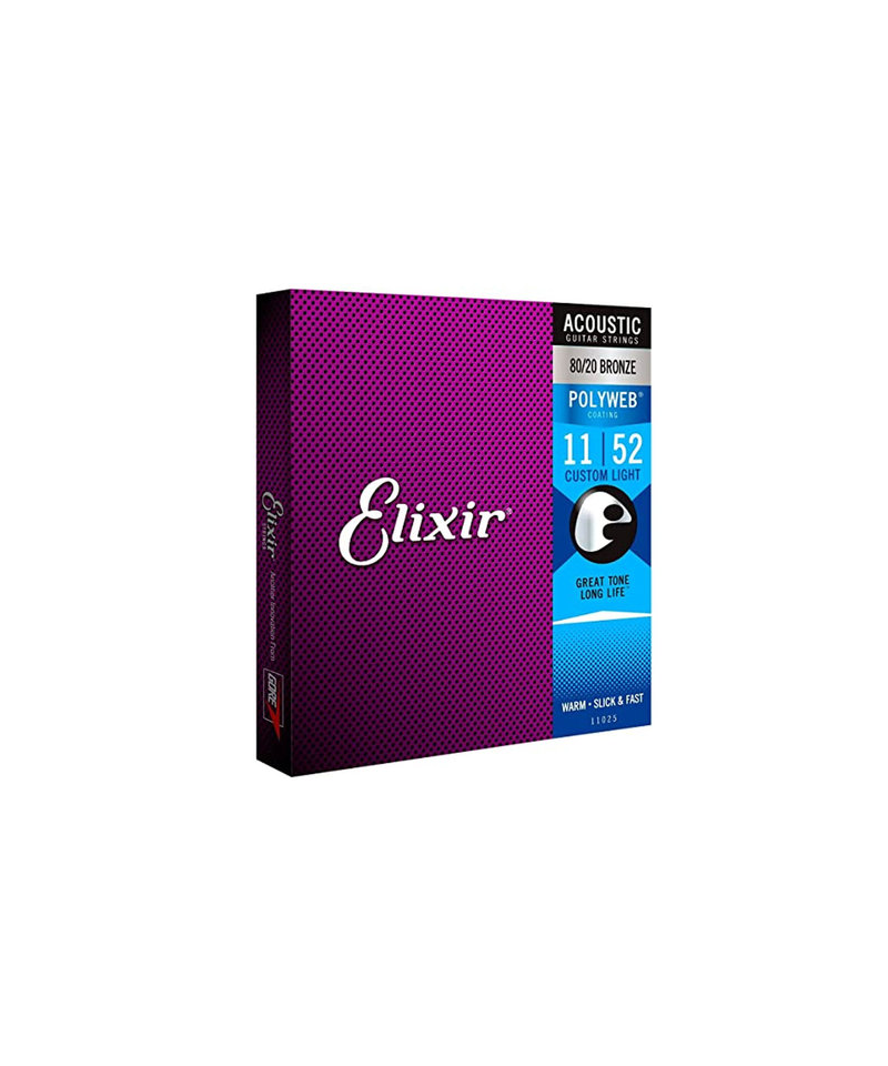 Acoustic guitar ropes with 80/20 bronze wrapping (80% copper, 20% zinc). They offer a hot and robust sound, as if the rope was mounted for a long time, but with a clear and shrill presence. Polyweb coating offers fluid and fast feeling for a better approach to strings. Elixir coating technology protects from corrosion and accumulation of dirt, prolonging the sound quality more than any other rope, coated or uncoated, on the market