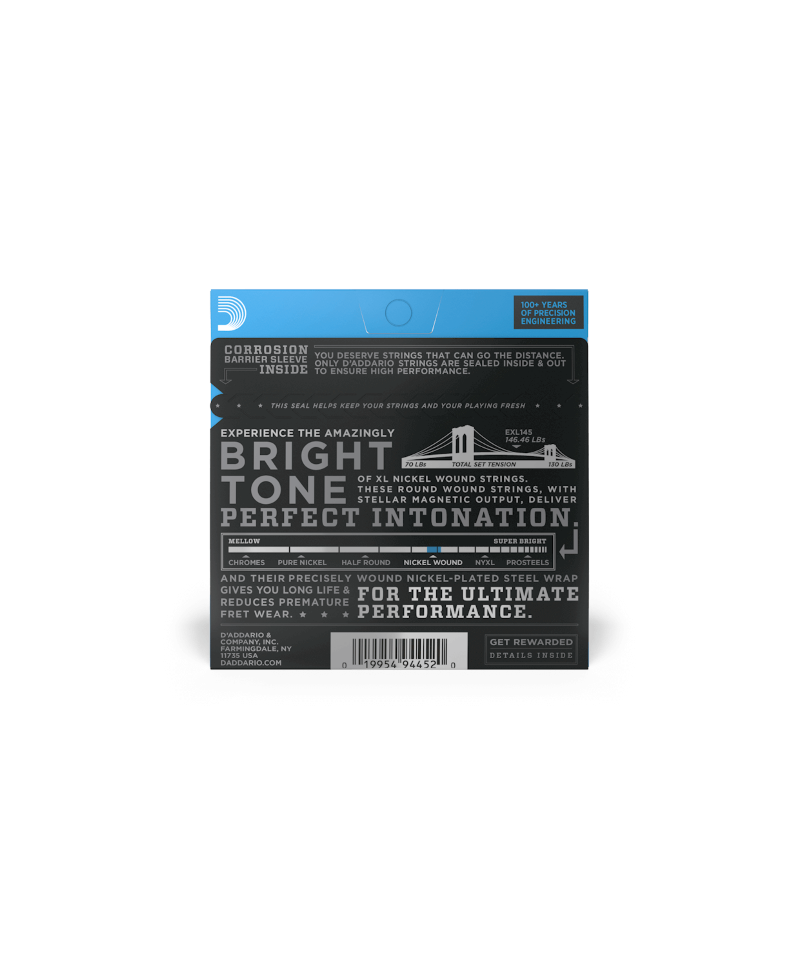 The EXL145 are a popular choice for rock and metal in which heavier calibers are needed. A third rope Plain offers greater flexibility than traditional electrical corders. Optimized for Down Tuning! The XL Nickel Wound, the most popular electric guitar ropes, have a precision wrapping in nickel-plated steel on a carefully drawn core, hexagonal steel shape with high carbon content. The result are strings with long life, the brilliant distinctive sound and an excellent intonation, is ideal for the largest variety of guitars and musical styles.