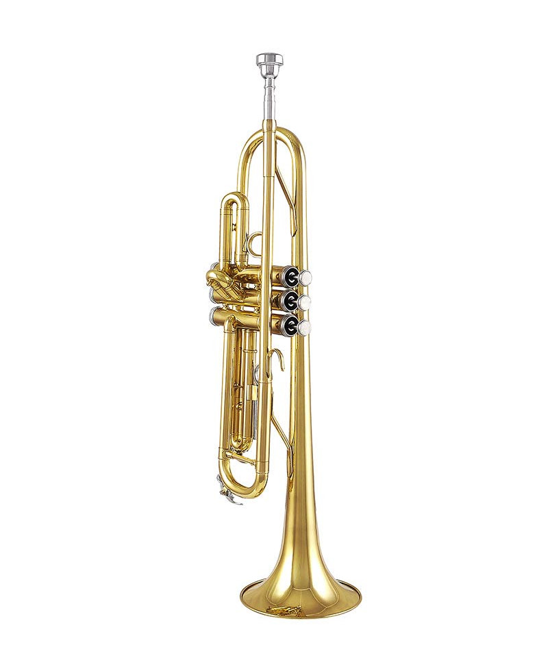 Trumpet in Sib, golden, 7C mouthpiece, case included. Standard template, suitable for beginners. Technical features: - Standard Brass Pipe - Moving slides - 3rd valve adjustable slide finger ring - 3rd Screw Stopper Screw - 125 mm Bell - clear-Lacquered body - Boston 7c Mouthpiece included - Inside Bag Included For A Better Instrument Protection - Slide Grease and Cleaning Cloth Included - Houses included
