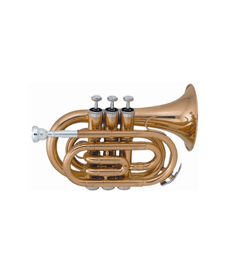 Developed by jazz musicians who were looking for a tool that vibrates in his hand and with the center of gravity closer to the body, the trumpet Pocket now considered a small hands instrument ". Since his cylindrical cone, unlike the tapering of the conical cornet, The sensations you have with a pocket trumpet are similar to those experienced with a" normal size "trumpet. The small size of the trumpet Pocket provides a perfect position of the lips on the mouthpiece. Fancenada 11.66 mm - 96 mm bell - Soft case. Lacquered. "