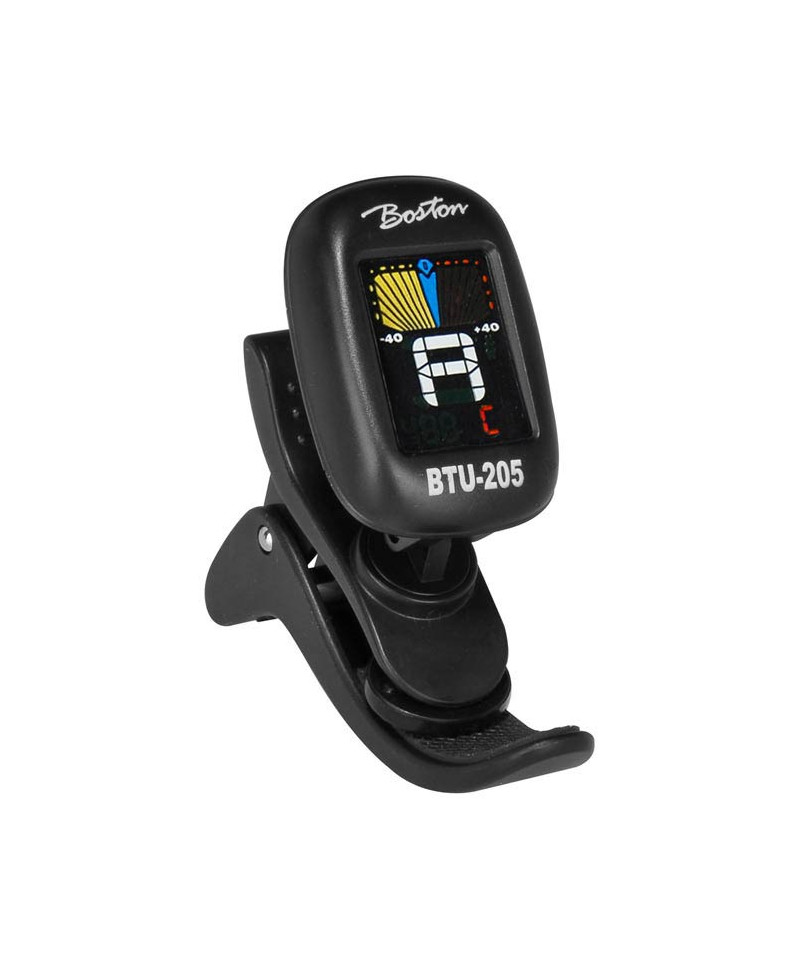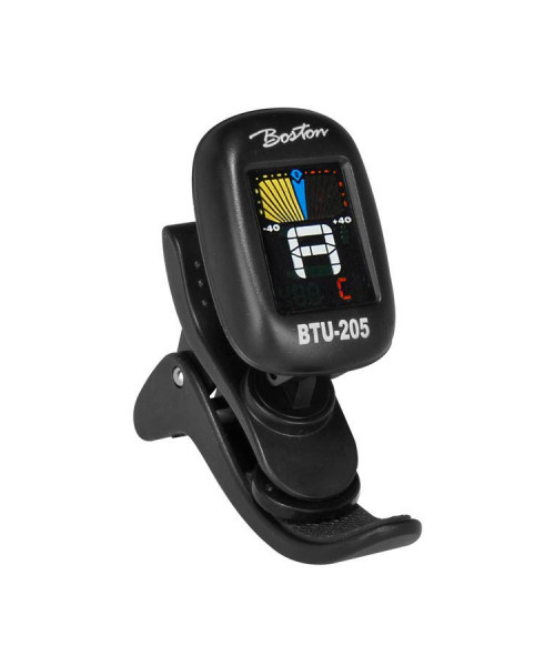 Clamp chromatic tuner with full color display and different selectable intonation options: (C) Chromatic, (g) guitar, (b) low, (v) violin and (u) ukulele. Automatic shutdown after 3 minutes of inactivity. Power supply via 3V CR2032 battery (included).