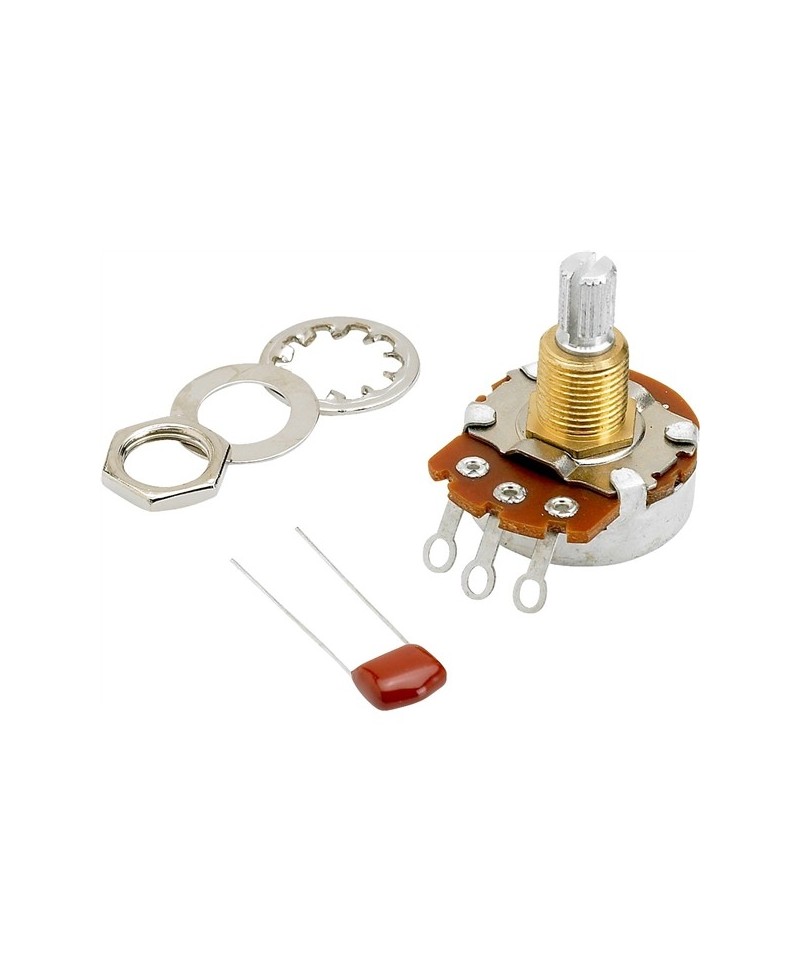 High quality potentiometers used on US Fender® instruments. The 500K is usually associated with most guitars equipped with Humbucking pickups.