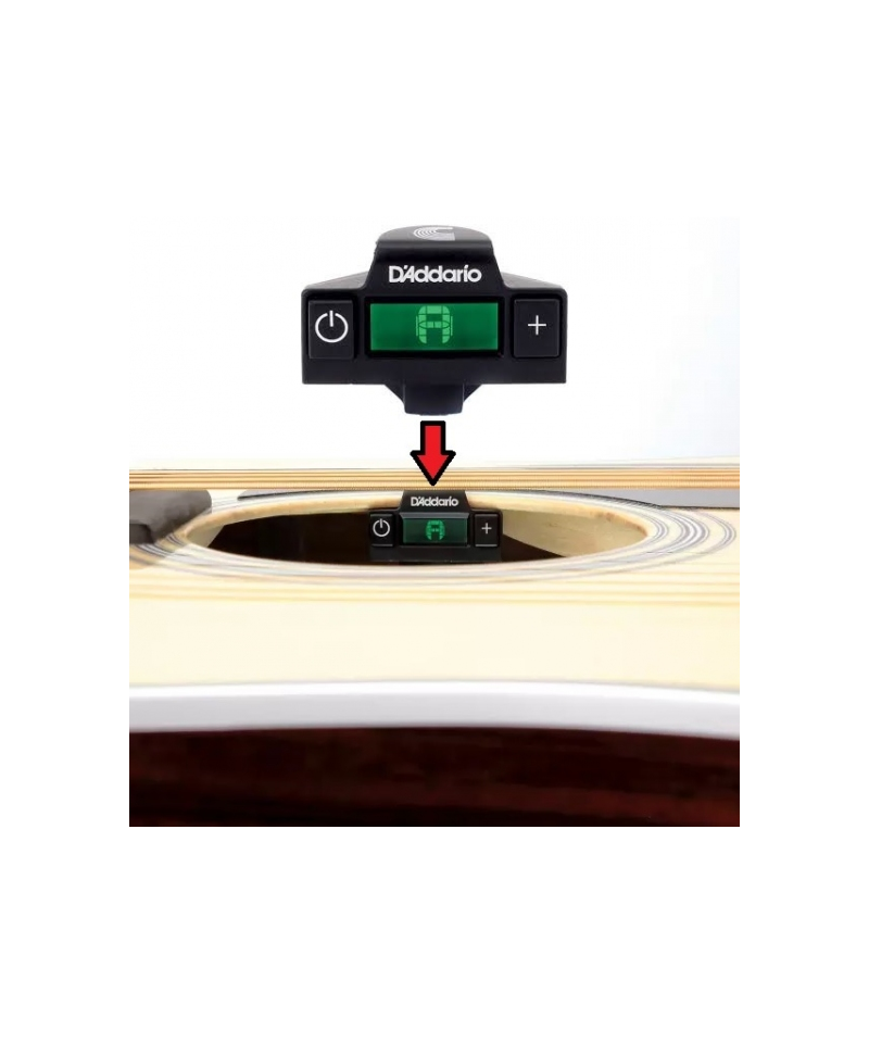 Designed specifically for acoustic guitar, ukulele and other acoustic instruments, the micro soundhole d'Addario chromatic tuner remains perfectly hidden inside the instrument hole for a discreet getting. The universal mounting clip allows a stress-free installation, while the highly sensitive piezoelectric transducer detects vibrations directly from the harmonic table for a quick and precise response. The bright multicolored display allows easy visualization in any environment. E'So small, comfortable and precise that you will want one for each acoustic instrument you own.