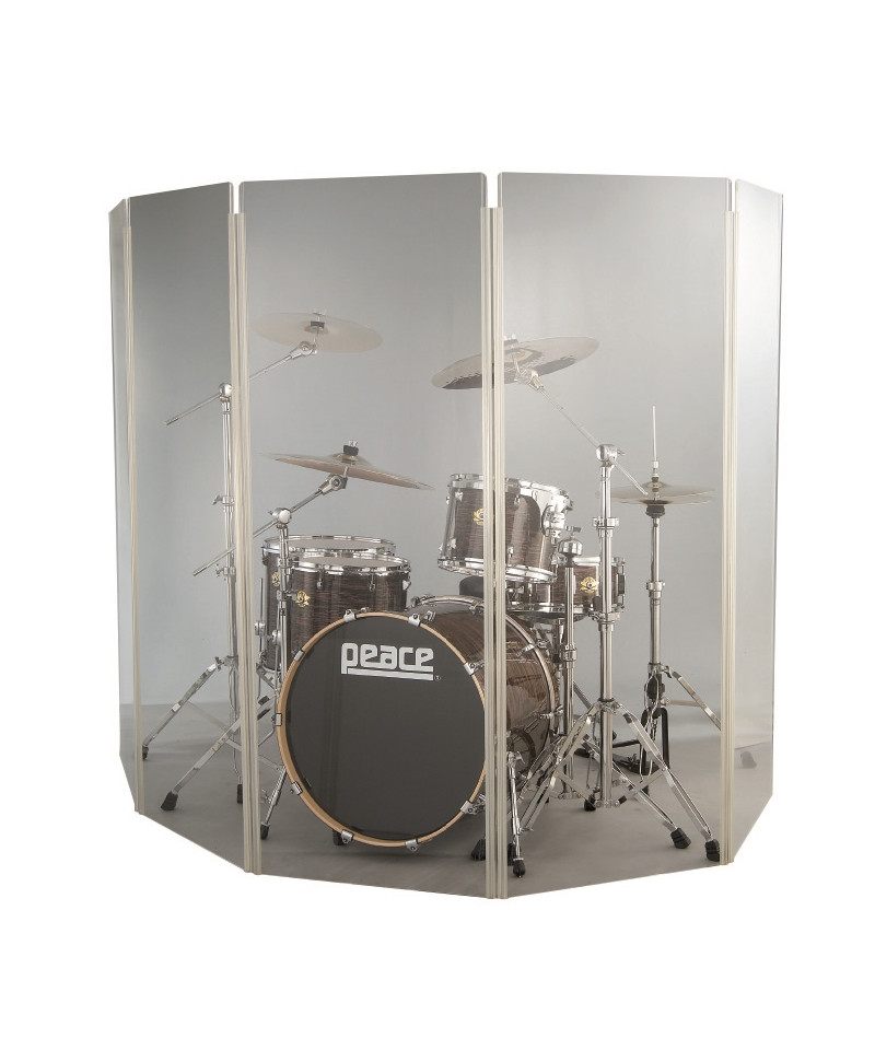 In recent years the technology applied to live sound grown in a prodigious manner, with remarkable improvements for PA equipment. The backline amplification was reduced, while the sound reinforcement grown exponentially. This led to the need to reduce the battery volume on stage in many situations, but without suffocating the creativity and drummer energy. For this reason the drums are born-Shield, built in panels of acrylic material acoustically isolate drummer from other instruments.