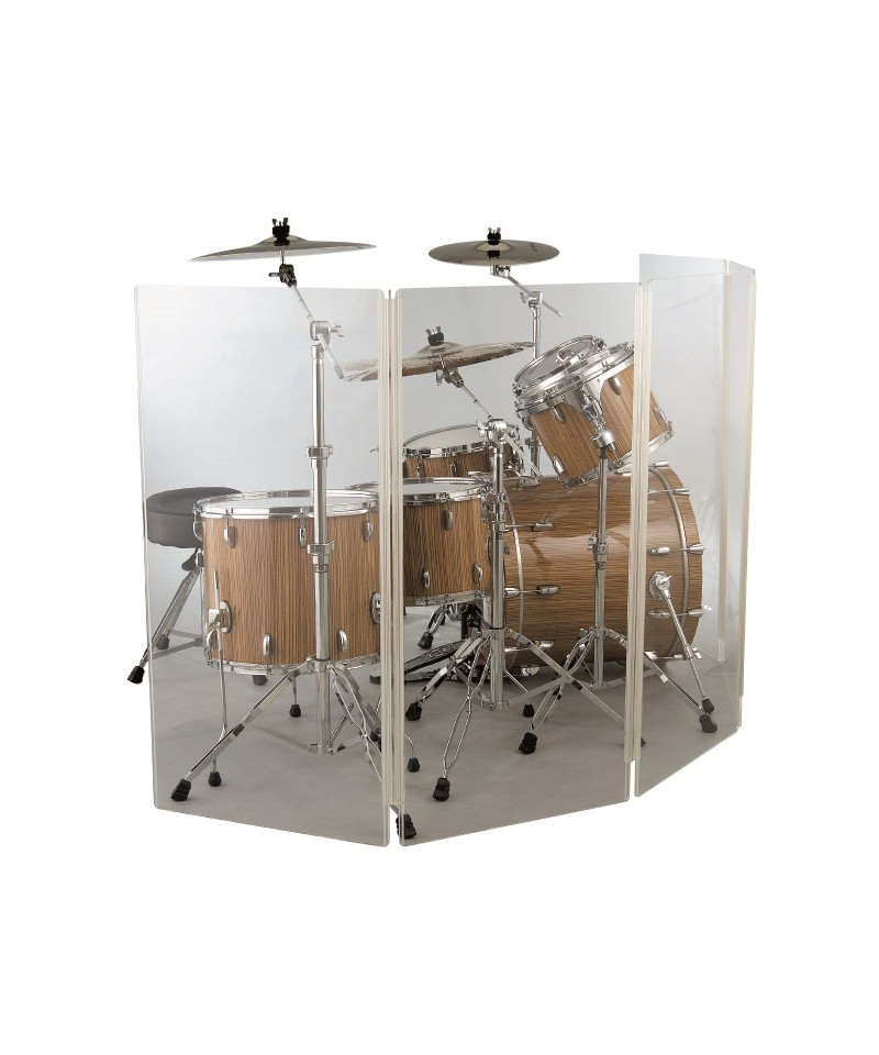 In recent years the technology applied to live sound grown in a prodigious manner, with remarkable improvements for PA equipment. The backline amplification was reduced, while the sound reinforcement grown exponentially. This led to the need to reduce the battery volume on stage in many situations, but without suffocating the creativity and drummer energy. For this reason the drums are born-Shield, built in panels of acrylic material acoustically isolate drummer from other instruments.