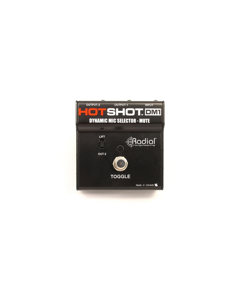 Designed to tackle communication problems on stage for artists who use monitoring systems in-Ear, the Hotshot DM-1 It is the combination of a microphone signal splitter and mute switch that allows a pedal to be pressed to silence the microphone and redirect the signal to the stage monitoring system or to talk to the members of the band or with the technicians, while you are on stage.