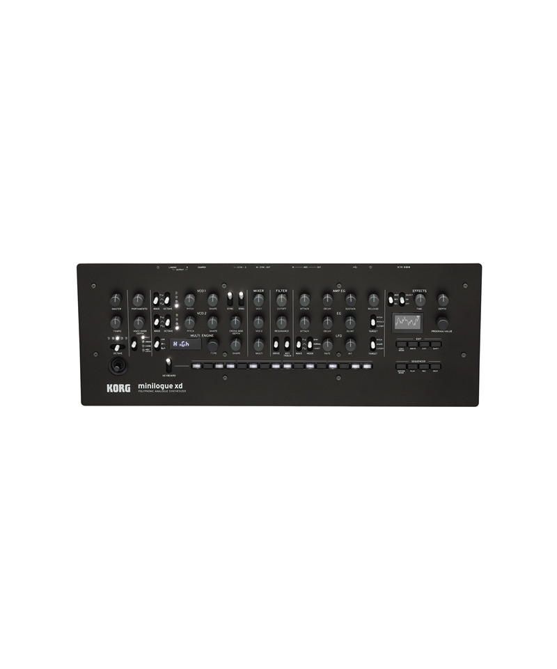 minilogue XD Module, 4 items Programmable Analog Synth Synth. Extended panel, 2VCO + Multi ENG. 1VCF, 2EG, 1VCA, 1LFO, Wave Shape, Ring & Cross Mod., Sync, Drive, 3 DGT. FX, Arpeggiator, 500 memories, OLED display with oscilloscope, Realtime and Step Sequencer, Motion Seq. Poly chain.