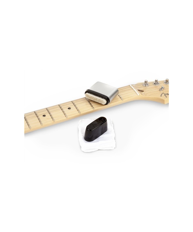 The Fender Speed Slick guitar clink extends the life of the strings of your instrument. The simple and effective applicator is child's play. The applicator buffer treated with our proprietary cleansing solution does all the work for you. Just rub it up and down the strings and clean with the cloth included. The Fender Speed Slick cleaning solution is safe for any keyboard finish and / or wood.