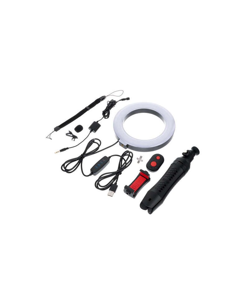 To always guarantee you the right Vibe, Irig Video Creator Bundle also includes one LED light 6 "Anulare With Color & Brightness regulation to always take you out the best. Strategically positioned on the upper part of IKlip Grip Pro, it offers a practical solution to the-in-One to wear wherever you want.