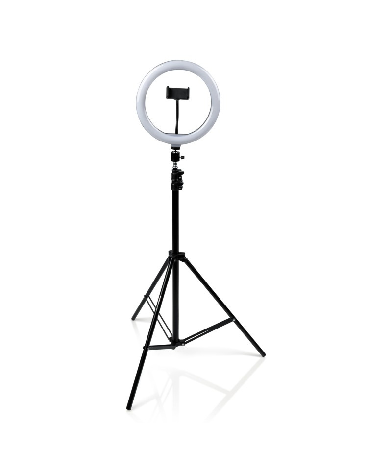 - 25cm luminous ring mounted on a 360 ° swivel spherical joint provided with a threaded terminal by 1/ 4 - 3 Color temperatures and 10 brightness levels