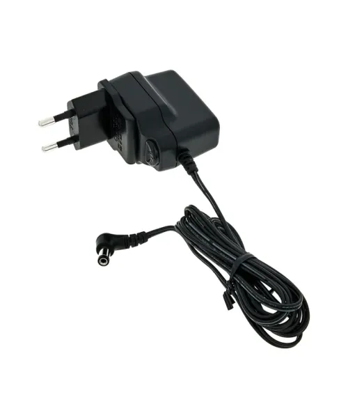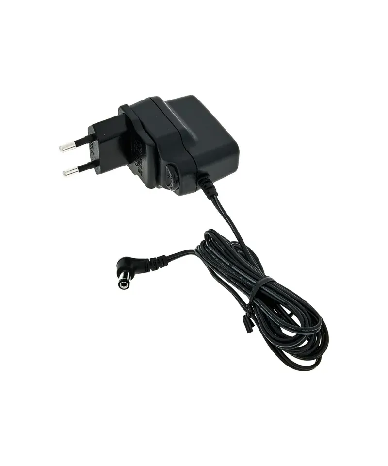 This AC power supply provides a 9V DC current, and is compatible with most pedals that need a current of 9 volts. Check the specifications to make sure that this dunlop power supply is suitable for your pedal. Provides a 200 mA power supply. Barrel with negative center. European plug.