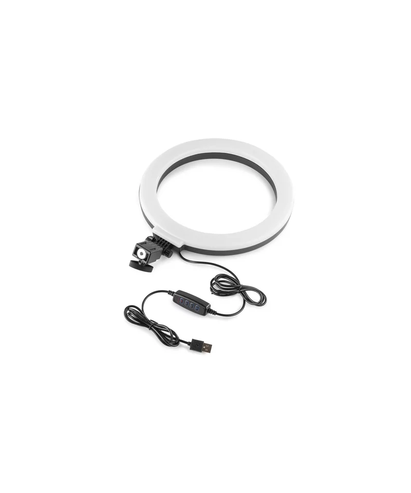 The Ring Light RL25 kit is equipped with a 10-inch wide ring made with high color-rendered energy-saving LED. This is a perfect tool to bring more light in video footage in indoor / outdoor, live shows, fashion photographs, trick tutorials, youtubing, vogging, etc. White, warm and natural and 10 levels of adjustable brightness to meet the different needs of photography light. Smartphone supports are compatible with most smartphones available in the current market. The RL25 ring lamp is compatible with any USB charging port, eg Laptop, PC, Power Bank, phone charger, wall charger, etc.