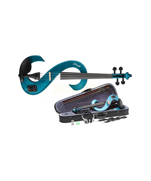 The EVN electric violin station offers stunning looks and comfortable soundability to the student musician. The maple body has a unique 'shape for a lower weight and more compact dimensions. Characteristic of this electronic model a under pickup saddle and EQ controls to reach your excellent tone. Smooth ebonized keyboard and finished neck satin is ideal for developing musicians that require an easy atmosphere. The blue finish and surprising appearance will turn the head for all the right motivations. This pack also contains all the accessories needed to continue your development such as headphones, a strap and headband