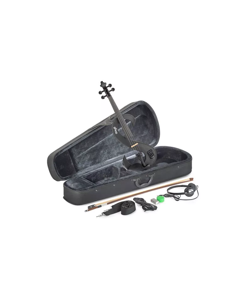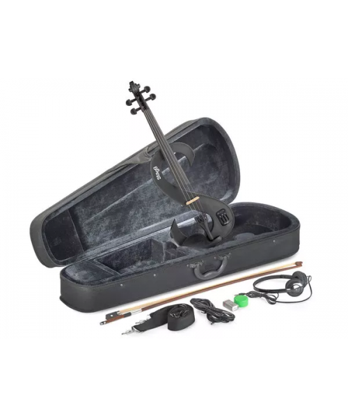 The Stagg Evn 4/4 MBK An electric violin with "S" body in lacquered solid maple, comfortable to play and complete with all the accessories to perform live or to study. Elegant in the form, the Eltronica for adjusting high, low and volume and getting the desired sound without the risk of triggers.