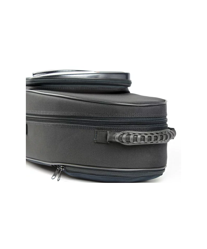 The inner cradle of the case made of high densit injected polyurethane injected, which protects the instrument from thermal shocks, and present a large compartment for accessories. The outer fabric Bam Ballistic water repellent and protective against abrasions and tears.