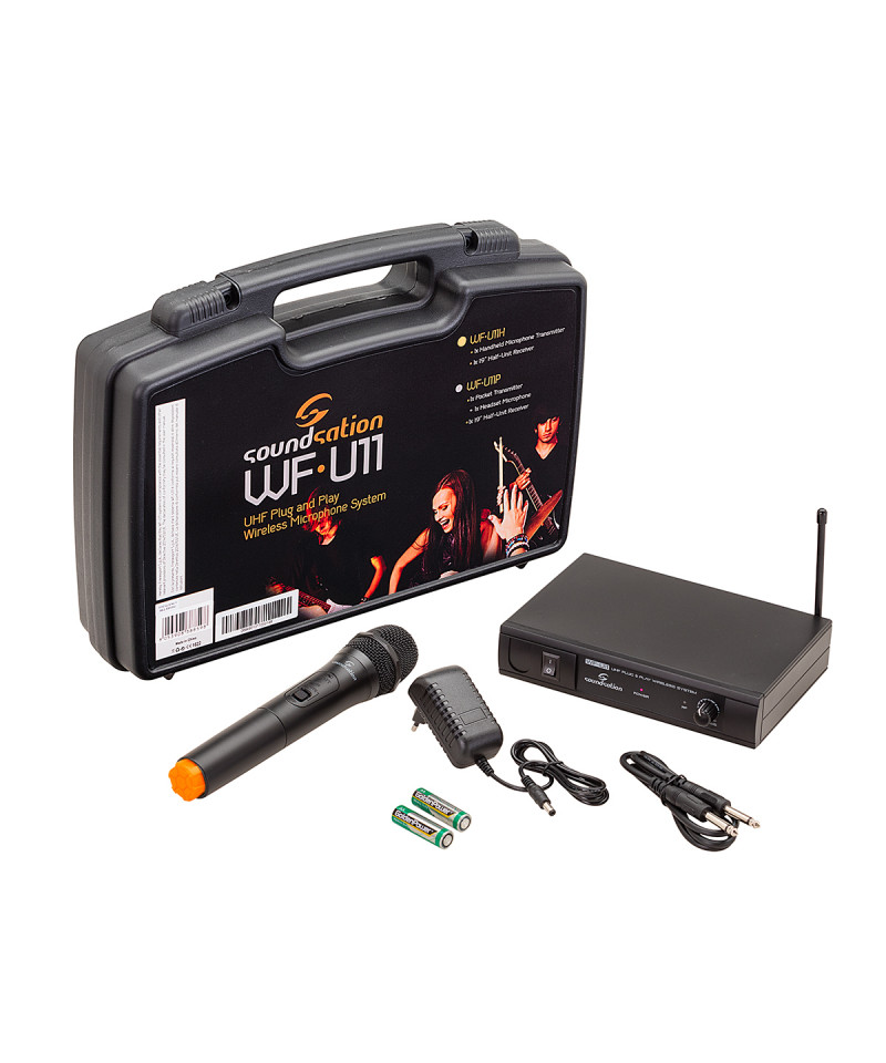 SOUNDSATION Wf-U11 is the answer to all those who need a reliable and high quality sound and ease of a wireless microphone system. Ideal in teaching, for Portable Sound, for communication to the public and in contexts DJ, the WF system-U11 hits the brilliant and warm sound, thanks to the quality of the components and the capsule designed for all applications.