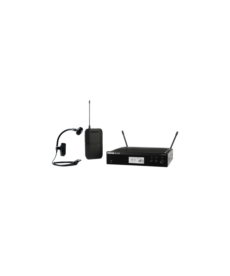 The Wireless Shure Blx14re system-P98h-M17 The ideal solution for those who play wind instruments and searches for reliability, practicality and professional audio quality both live and studio. The PGA98H microphone, cardioid condenser, optimized for brass and wood, equipped with flexible doct neck, inline preamplifier and direct mounting clamp on the instrument. The robust and light construction makes it perfect for dynamic performance.