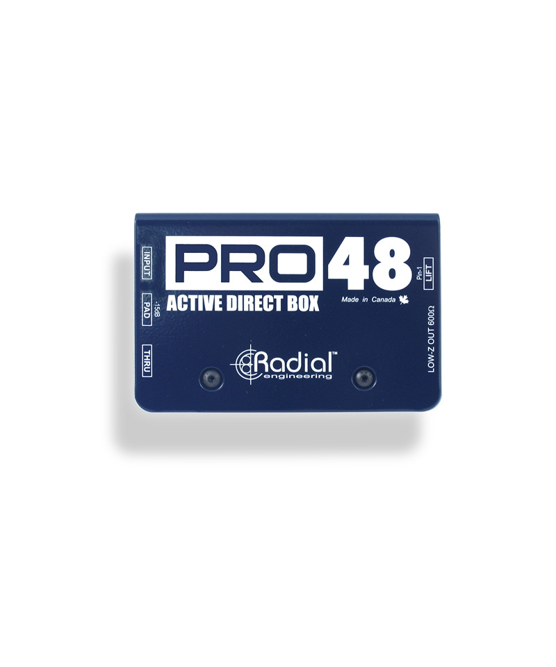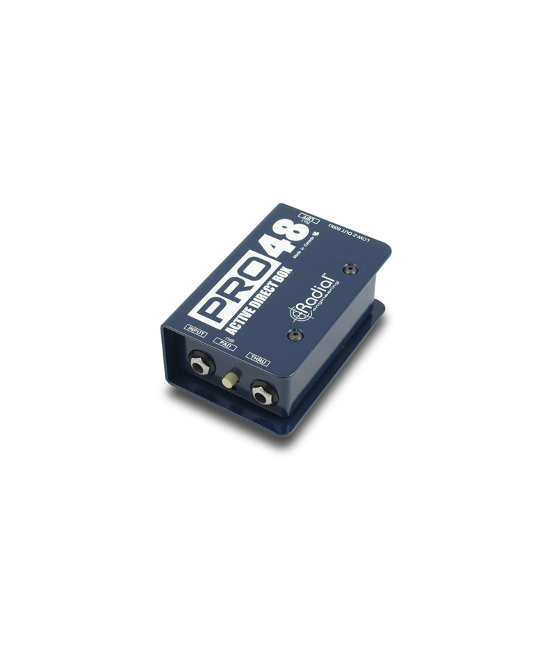 La Pro48 Radial una compatta Direct Box attiva ad alte prestazioni alimentata tramite Phantom 48V, progettata specificamente per gli odierni strumenti ad alto guadagno. L'innovativo alimentatore switching interno della Pro48 aumenta in modo significativo l'Headroom producendo meno distorsione, ottenendo una risposta morbida e lineare che si estende da 20Hz ben al di sopra di 40kHz. Ci si traduce in un segnale naturale, incolore, altrettanto buono o addirittura migliore di DI Box che costano molte volte di pi. Le prestazioni superiori rendono la Pro48 un candidato ideale per l'utilizzo con bassi attivi alimentati con batterie, chitarre acustiche che tendono a sovraccaricare altre DI Box.