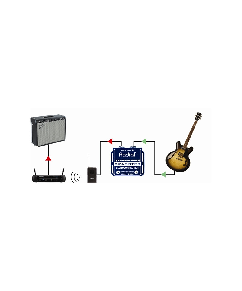 Quando una chitarra viene collegata ad un amplificatore, il pickup e l'amplificatore si uniscono per formare un circuito. Ma non appena si introduce un buffer tra i due, questo rapporto naturale viene perso. Il pickup 'vede' il buffer e il timbro cambia. Questa è la ragione fondamentale per cui i chitarristi odiano il suono dei sistemi wireless e dei pedali non true-bypass. Dragster risolve il problema ripristinando il timbro pieno e ricco che si perde collegando la chitarra ad un trasmettitore wireless o ad altri tipi di ingressi con buffer quali effetti a pedale, mixer, schede audio o sistemi di registrazione all-in-one.