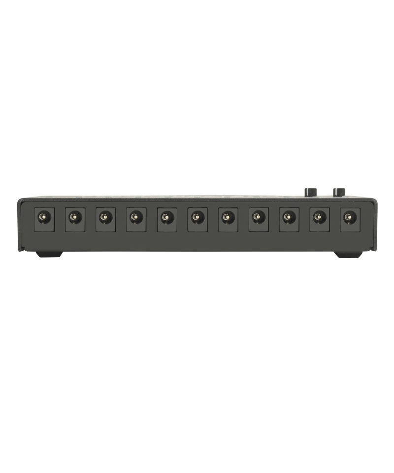 Uscita 9V DC (200mA) con LED di stato individuali e protezione da corto circuito + 4x Uscita 9V DC (500mA) con LED di stato individuali e protezione da corto circuito + 2x Uscita 9V/12V/15V/18V DC Selezionabile muovendo l'apposito selettore (200mA) con LED di stato individuali e protezione da corto circuito.