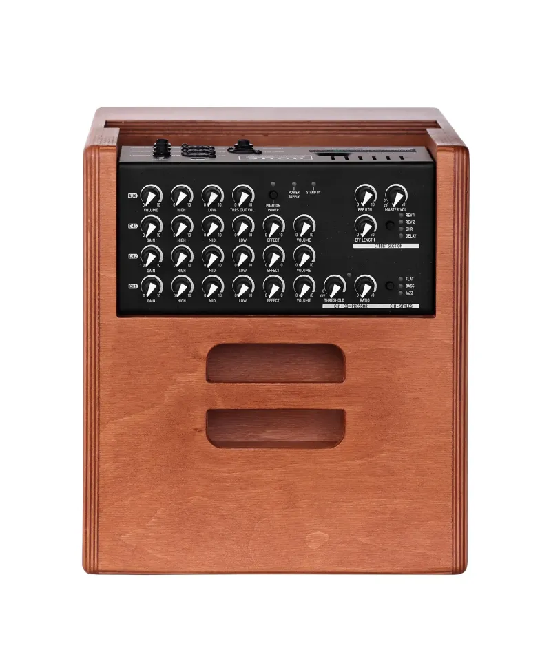 L’ACUS One Forstrings 8ferdi Wood è l’amplificatore acustico professionale pensato per chitarristi, cantautori e musicisti che cercano un suono naturale e potente dal vivo e in studio. Dotato di 4 canali indipendenti, EQ a 3 bande, effetti digitali di alta qualità e una potenza di 200W RMS, offre versatilità e chiarezza sonora per strumenti acustici e voce. Il design in legno naturale valorizza ogni ambiente, mentre la portabilità lo rende perfetto per concerti, eventi e sessioni itineranti. Ideale per chi desidera performance di livello superiore e massima affidabilità.