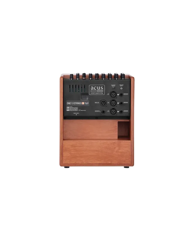 ONEFORSTRINGS 5FERDI un amplificatore per chitarra acustica e classica da 70 Watt dotato di 3 ingressi separati + un ingresso Aux (TRRS audio in/out e Bluetooth audio)provvisto di volume indipendente e Equalizzatore a 2 bande. I 3 ingressi sono corredati di Gain, Equalizzatore a 3 bande, mandata effetto e Volume. L' ingresso 1 anche dotato di altre funzioni: ha infatti un Compressore e uno switch che cambia le caratteristiche del canale in funzione del tipo di strumento selezionato: