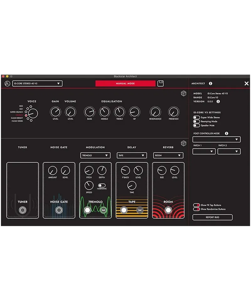 - Voci: 6 voci (Clean Warm, Clean Bright, Crunch, Super Crunch, OD1, OD2)