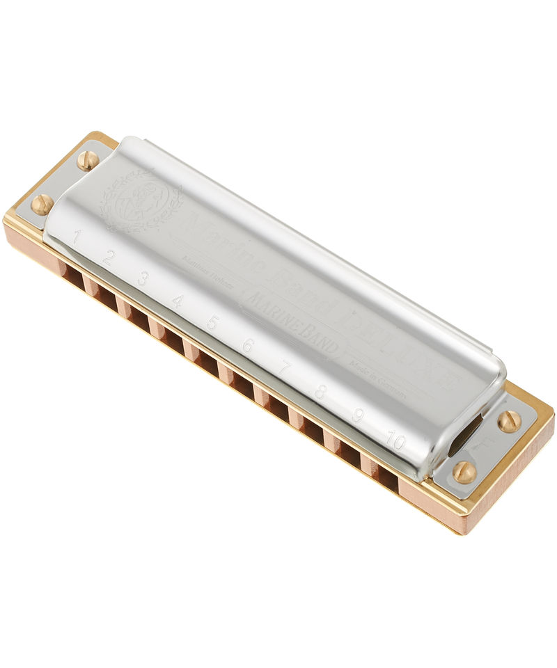 Armonica diatonica di 20 voci. Pettine in legno di pero. La nuova Marine Band Deluxe combina le cañatteristiche della leggendaria armonica con una varietà di miglioramenti allo stato dell'arte, che possono essere descritti come una versione modificaña della classica Marine Band.