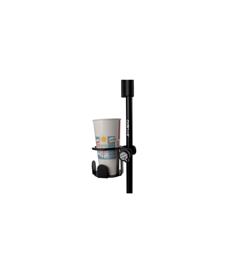 Supporto da montare su aste microfoniche o leggii, con tubolare fino a 30mm, utile per l'appoggio di bibite in lattina, bottiglia, bicchieri e cup, fino a 84 mm di diametro. Facile stallazione grazie al comodo clamp regolabile.