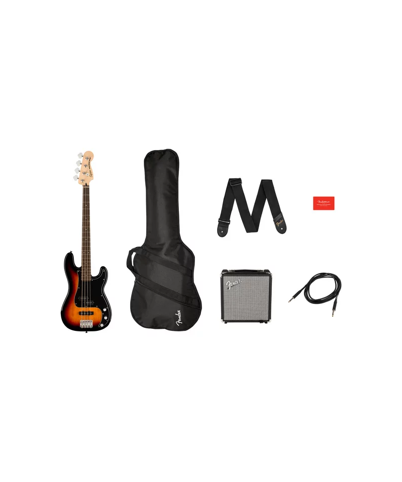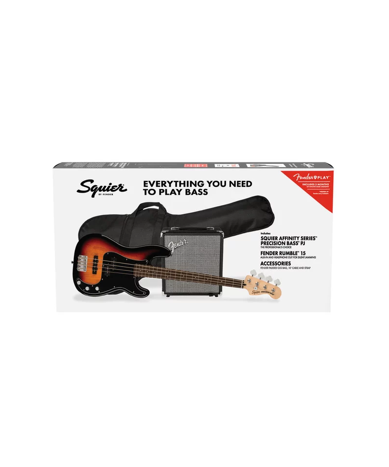 Fornendo 15 watt di puro suono di basso Fender, l'amplificatore Rumble 15 dotato di un altoparlante Fender Special Design da 8", equalizzatore a tre bande, jack per cuffie per esercitarsi in silenzio e jack di ingresso Aux per il collegamento di un dispositivo multimediale. Con la custodia imbottita inclusa, cinturino e cavo da 10', lo Squier Affinity Precision Bass PJ Pack ha tutto ci di cui hai bisogno per trasformare la tua affinit per la musica in una passione per tutta la vita.
