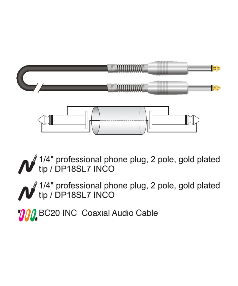 - Connettori: 2x Jack professionali da 6.3mm, 2 poli (Mono), punta dorata / DP18SL7 INCO