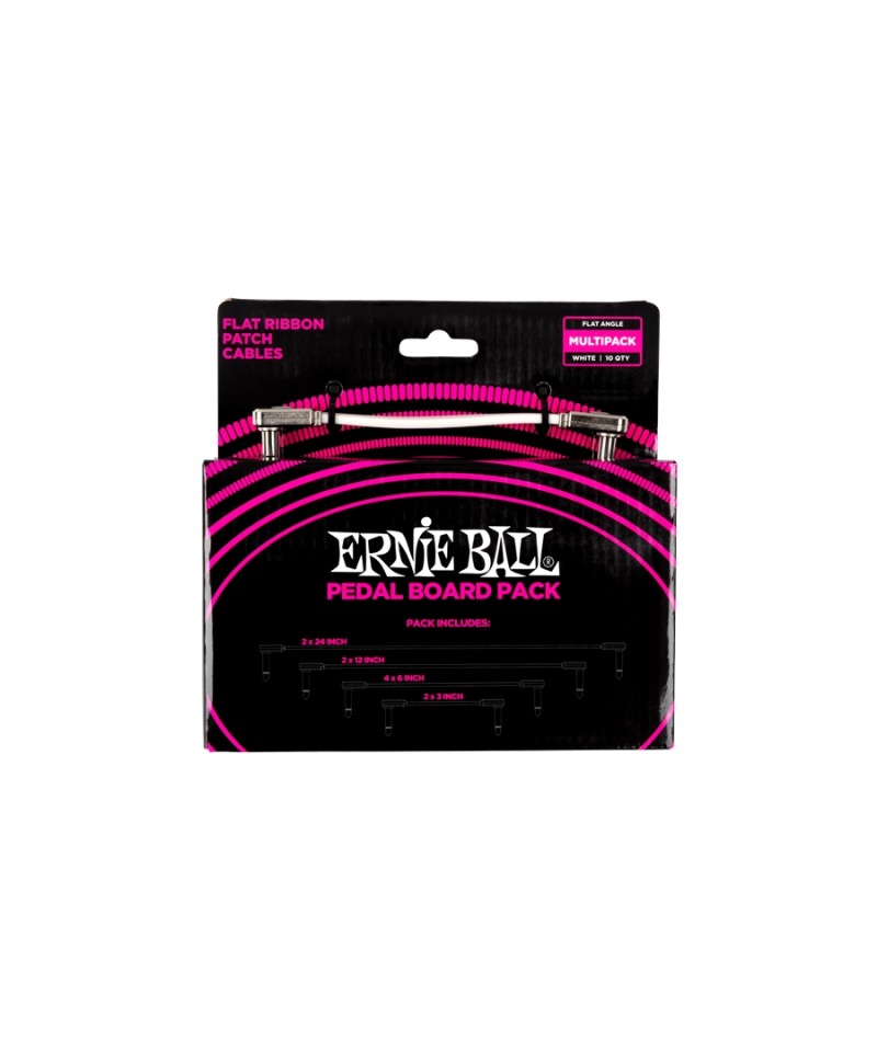 6387 Flat Ribbon Patch Cables White il Multi-pack contenete 10 cavi patch della serie Flat Ribbon White di casa Ernie Ball. E' perfetto sia per i chitarristi, sia per i bassisti che vogliono organizzare la propria pedaliera ottimizzando tutti gli spazi, senza perdere qualità nella catena del suono. Tutti i cavi all'interno della confezione sono in finitura bianca