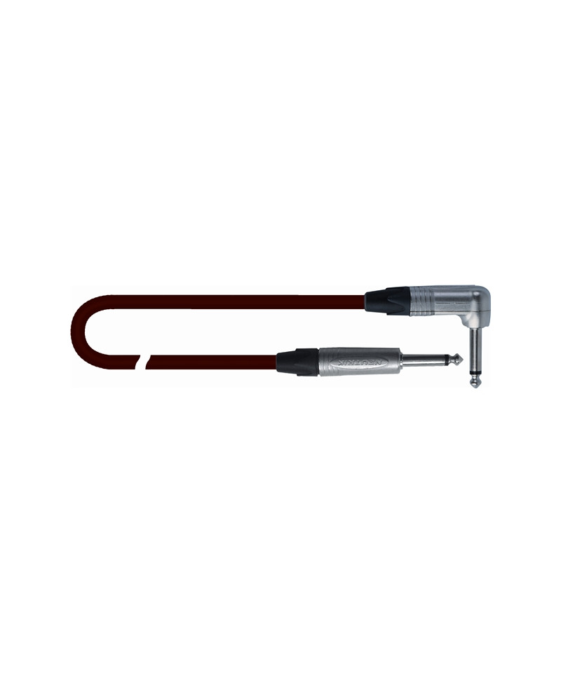 Cavo Jack 90° /Jack specifico per chitarra. Utilizza jack Neutrik (NP2X dritto, NP2RX angolato). Il cavo, color rosso mattone.