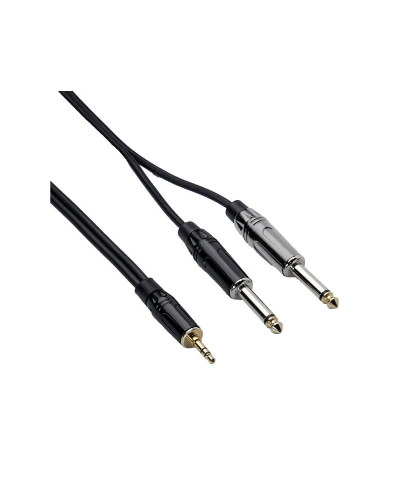 Cavo interlink serie Eagle Pro, realizzato con un mini jack stereo diametro 3,5 mm e due jack mono diametro 6,3 mm. Lunghezza 3 m.