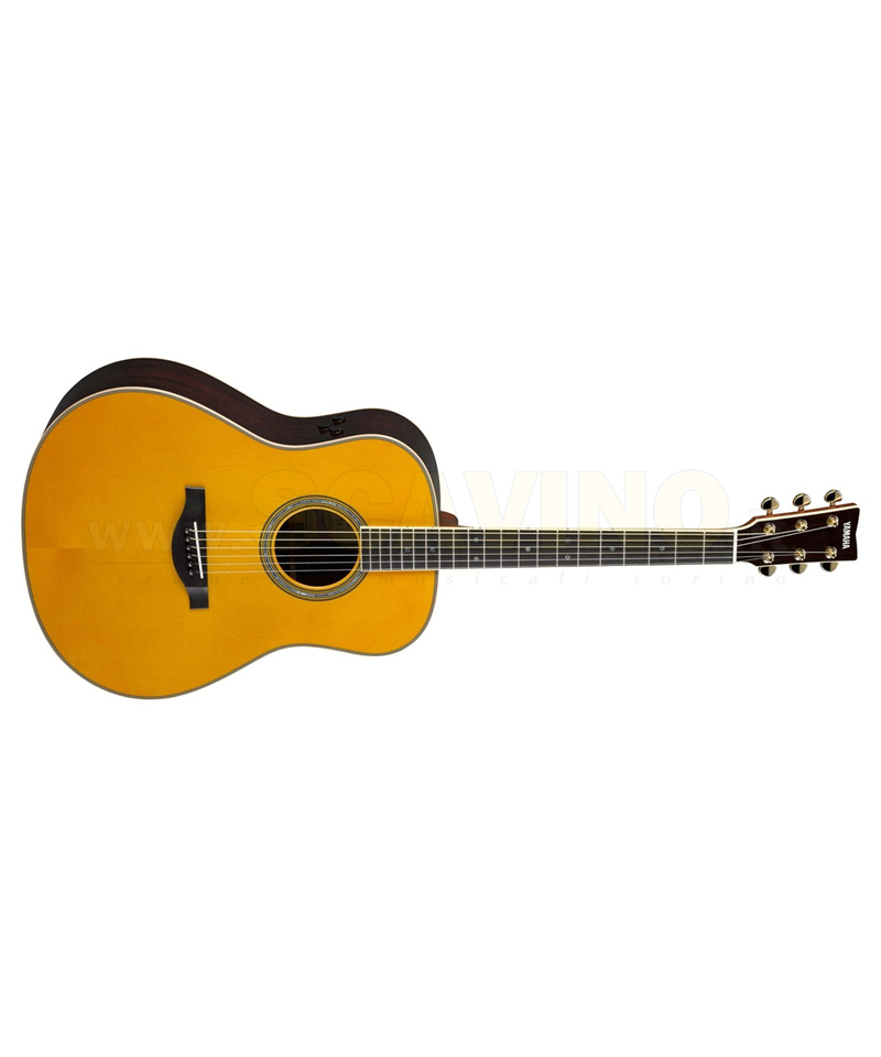 Le chitarre Yamaha TransAcoustic ricreano quell'esperienza incredibile senza bisogno di amplificazione o di effetti esterni, solamente con la chitarra. E' la pi coinvolgente, stimolante chitarra acustica che tua abbia mai suonato. Un attuatore installato sulla superficie interna della parte posteriore della chitarra vibra in risposta alle vibrazioni delle corde. Le vibrazioni dell'attuatore vengono poi trasmesse al body, all'aria interna e intorno al corpo della chitarra, generando un riverbero ed una autentico chorus dall'interno di esso. Tre semplici manopole consentono di regolare il livello di effetto applicato ed il livello del volume. Inoltre, mantenendo i controlli di piccole dimensioni si riduce l'area dei fori nel materiale del corpo, riducendo la perdita di suono. Il corpo interamente in legno massello, basato sulla serie L. Un bracing non smerlato modificato mantiene il caratteristico suono brillante della serie L, migliorando nel contempo la fascia bassa. Il trattamento del top con l'esclusivo processo A.R.E. Yamaha d allo strumento un suono ricco, vintage, come se la chitarra fosse stata suonata per anni.