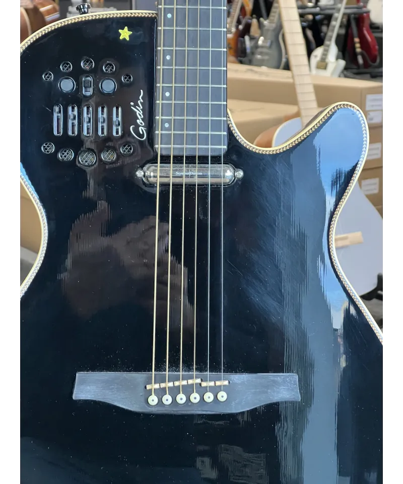 - EQ Godin Custom con Controlli indipendenti Synth + Controllo Volume, Treble, Mid, Bass per il suono acustico
