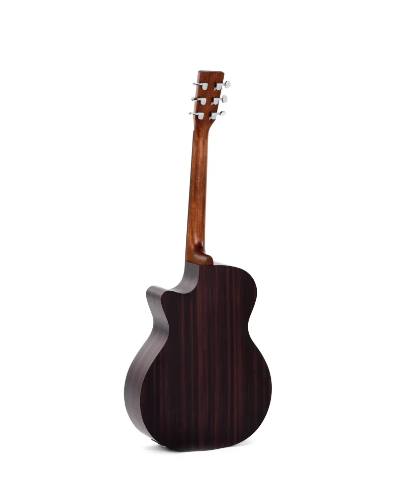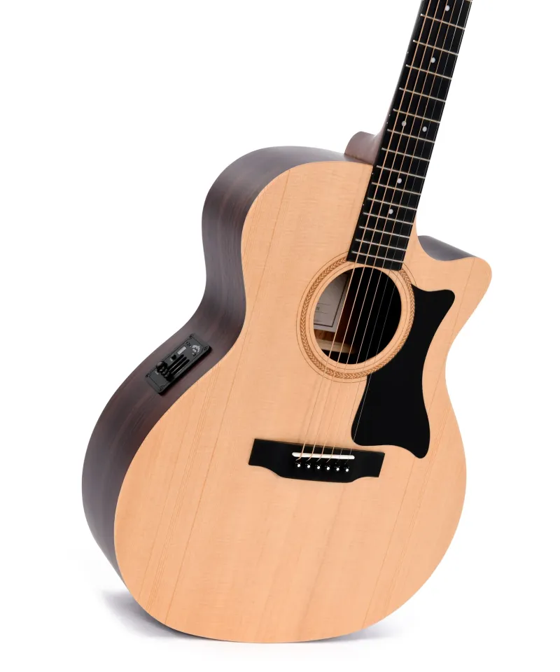 La Sigma GTCE Electro Acoustic è abbagliante in ogni modo, dal grande body cutaway OM che si presta a un suono grande e una suonabilità senza sforzi alla finitura naturale adornata da un battipenna nero. Il suo top in abete Sitka massello costituisce la tavola armonica definitiva per un suono brillantemente chiaro ed una dinamica superba. Anche con un volume elevato, puoi contare che ogni nota si libri in modo articolato. E grazie al retro ed ai fianchi in tiglio, avrai sonorità splendidamente bilanciate e ancora più definizione. Questa chitarra è dotata di un preamplificatore Sigma e di un accordatore integrato per una scultura del suono esperta e prestazioni impeccabili. Collega, amplifica e modella il tuo suoni con i controlli del volume e dell'equalizzazione, il tuo suono magico attraverserà la stanza senza perdere nessuna di quelle meravigliose qualità acustiche dell'abete rosso e del tiglio.