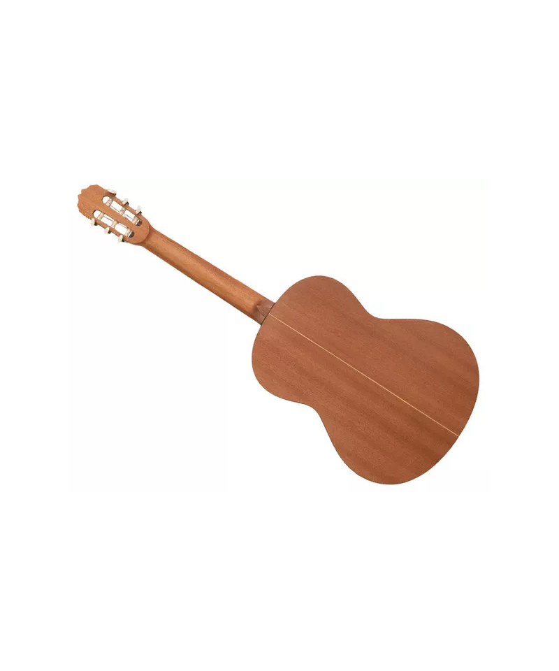 Chitarra classica. Top solido in cedro. Fasce e fondo in mogano. Manico in mogano. Tastiera in palissandro indiano. Capotasto in osso 52mm. Meccaniche placcate in nickel. Binding in palissandro indiano. Scala 650mm. Finitura opaca.
