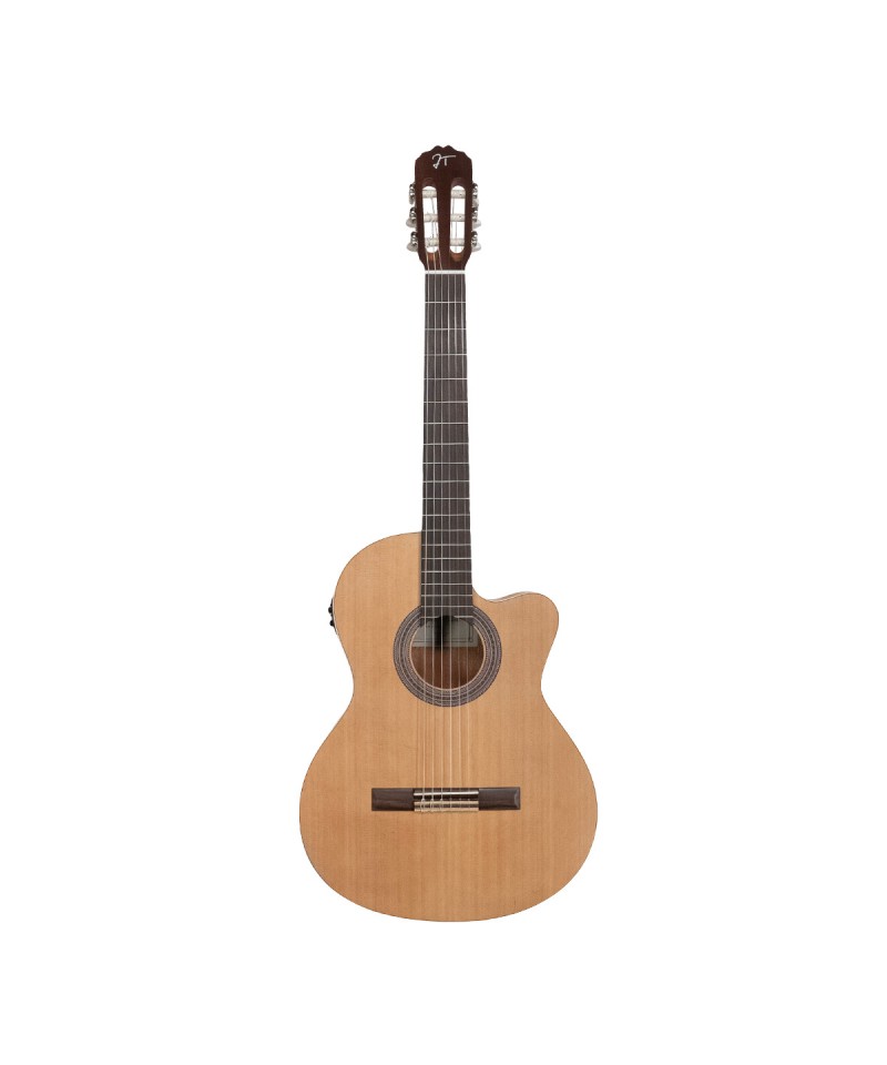 La JTC-5SCE è il modello di chitarra classica cutaway per i principianti che vogliono qualcosa di diverso. La struttura interna è la stessa del modello JTC-10. Grazie ad un top in legno massello ed alla finitura opaca, la qualità del suono è diversa rispetto a quest'ultima, tuttavia la JTC-5S offre un valore aggiuntivo nella sua gamma.