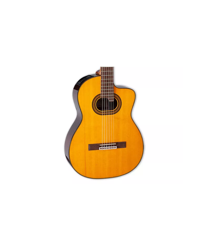 Ogni singola decisione di progettazione stata attentamente considerata per offrire l'esperienza pi completa possibile. Il body ha un top in abete massello con fondo e fasce in noce che creano un suono ben bilanciato. Ha una buca di forma ovale che scolpisce le onde sonore che escono dal corpo e, per le performance amplificate, l'elettronica Takamine riproduce il carattere acustico naturale dello strumento.