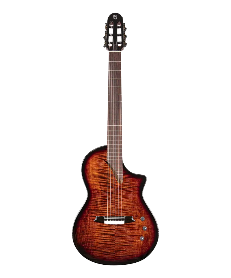 Modello: HispaniaTop: Acero FiammatoFondo e Fasce: MoganoPickup: SG1Borsa Inclusa