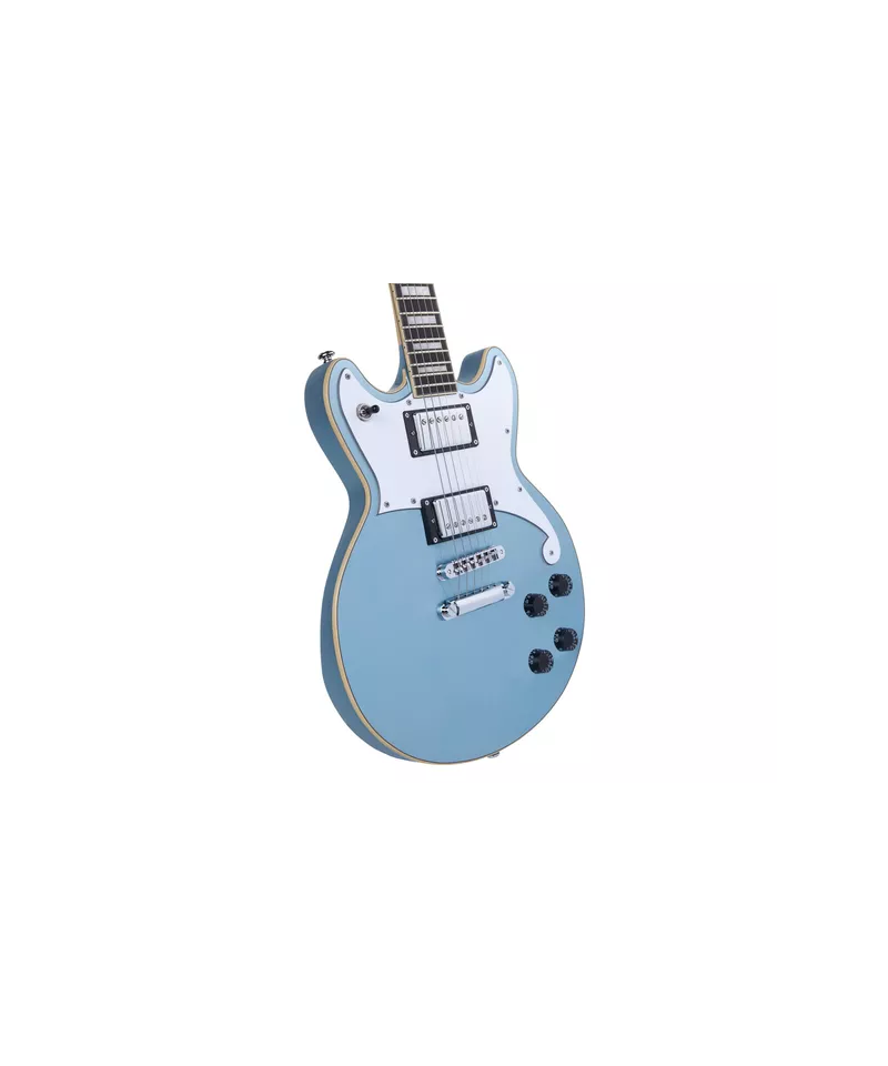 D'Angelico Premier Brighton, l'ultimo arrivo in casa D'Angelico, una solid body Double cutaway molto comoda e affascinante che regala comfort grazie alla sua forma e alle spalle mancanti profonde che consentono un facile e immediato accesso ai tasti pi alti della tastiera. Dotata di due humbucker con push pull per lo split a single coil ci consente con suoni morbidi, precisi e ricchi di armoniche di poter spaziare in tutti i generi. Corpo in tiglio, manico in acero con tastiera in Ovangkol, meccaniche rotomatic stairstep, ponte con stop-bar, colore Ice Blue Metallic. Custodia ESCLUSA
