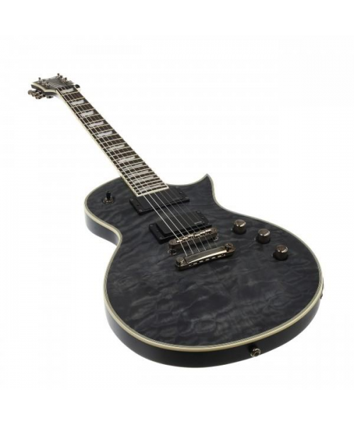 ESP LTD EC-401 QM See Thru Balck Satin edizione limitata è un capolavoro di design e sonorità nel mondo delle chitarre elettriche. Famosa per il suo perfetto equilibrio tra look elegante e prestazioni sonore eccezionali, questa chitarra combina l'artigianalità di alto livello con un'estetica irresistibile. Grazie alla sua scala standard di 24.75", tipica di molte chitarre elettriche rinomate, la EC-401 offre una tensione ideale delle corde e una tonalità inconfondibile. Il corpo realizzato in mogano premium esalta le calde tonalità medie, garantendo al contempo un suono denso e avvolgente, arricchito da bassi profondi e acuti melodiosi. Ma ciò che distingue veramente EC401 edizione limitata è il suo top in Acero Quilted. Oltre a conferire alla chitarra un aspetto distintivo con il suo affascinante disegno trapuntato, questo materiale esalta la luminosità e la chiarezza sonora.