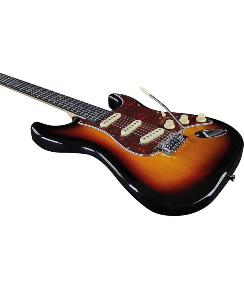 Dalla classica forma stratocaster, questa s 300 ha configurazione S/S/S, due toni un volume e selettore a 5 posizioni. Corpo in tiglio, manico in acero, tastiera in palissandro a 22 tasti. Disponibile in pi colorazioni.
