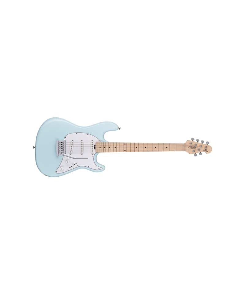 La chitarra elettrica Cutlass SSS, CT30SSS, di Sterling by Music Man nella colorazione Daphne Blue presenta corpo in Pioppo e manico e tastiera in Acero. Disponibile in quattro colorazioni differenti, il modello Cutlass SUB Series di Sterling by Music Man pensato con configurazione dei pickup SSS per le finiture Charcoal Frost e Daphne Blue, HSS per Vintage Cream e Stealth Black. Il selettore dei pickup a 5 vie, il ponte tremolo dal design vintage e la paletta oversized 4 + 2, rendono la Cutlass di Sterling by Music Man uno strumento accessibile ma altrettanto raffinato.