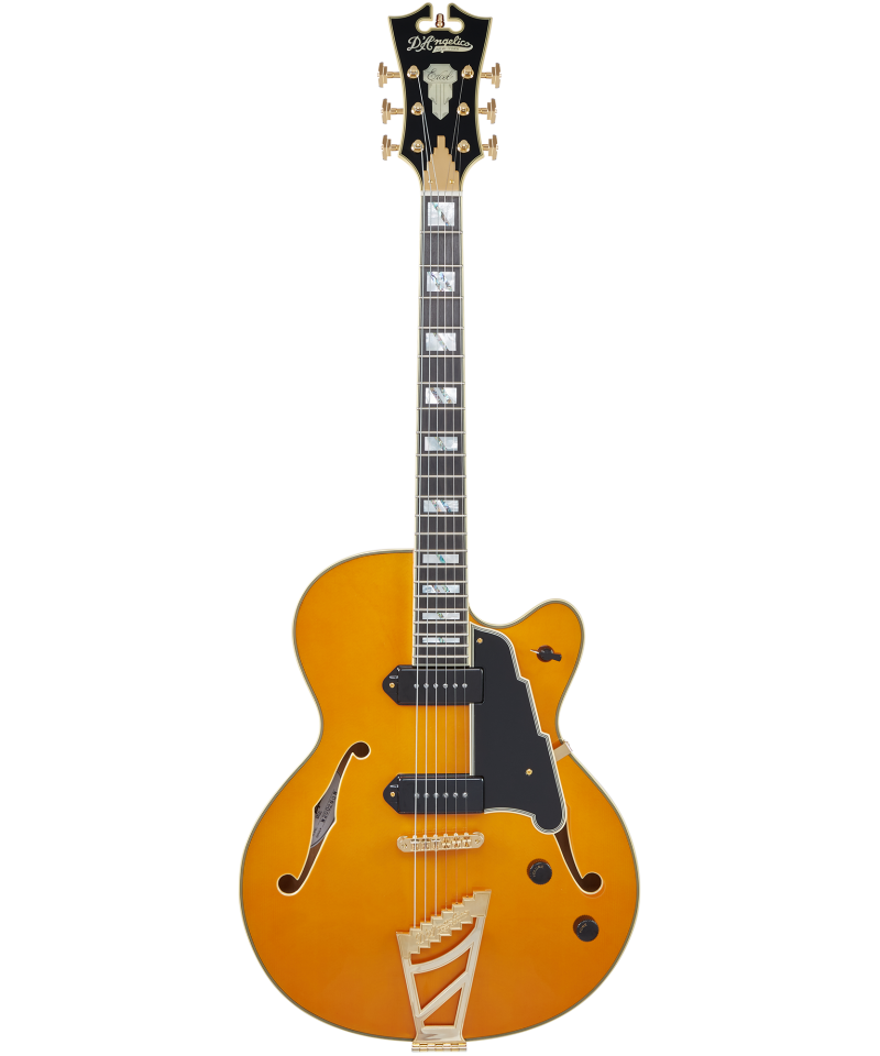 D'angelico Excel DC, con la nuova versione presentata nel 2019, questa moderna semi-hollow con doppia spalla mancante ci regala altissime prestazioni grazie alle attenzioni costruttive e ai materiali finemente scelti. Dotata di 2 humbucker 59 Seymour Duncan con la possibilit di splittare a single coil in unica bobina questa semiacustica ci assicura suoni rotondi, pieni e ricche di armoniche unitamente ai suoni graffianti rock tipici dei pick-up single coil. Top, fondo e fasce in acero fiammato, tastiera in Palissandro, manico con C-shape in acero 3 pezzi, meccaniche dorate Grover Super Rotomatic, segnalasti in madreperla, ponte con stop-bar, colore Vintage Natural, finitura lucida.
