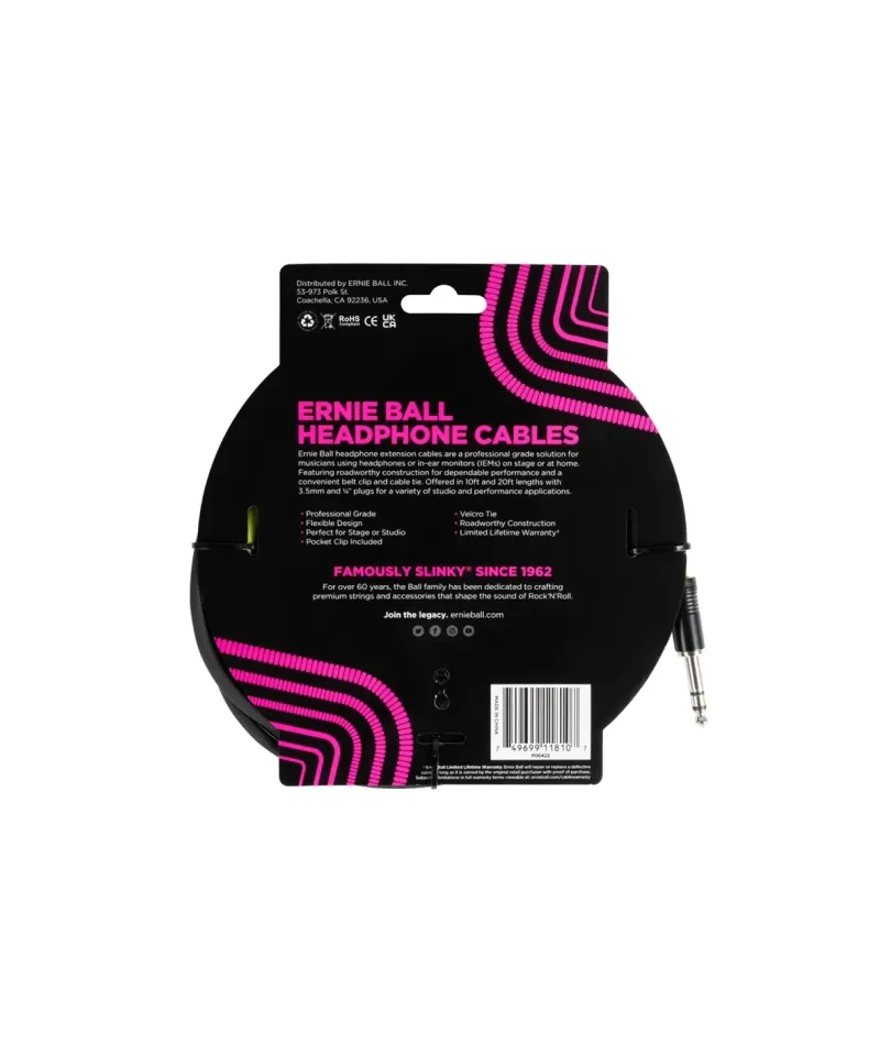 I nuovi cavi di prolunga per cuffie di Ernie Ball sono una soluzione di livello professionale per i musicisti che utilizzano cuffie o monitor in-ear (IEM) sul palco o a casa per esercitarsi o registrare. Sono caratterizzati da una struttura robusta per prestazioni affidabili e possono essere agganciati tramite una comoda clip da cintura e una fascetta in dotazione. Disponibile in lunghezze da 3 e 6 metri, con connettori da 3,5 mm e 1/4" per una varietà di applicazioni in studio e per le performance. Collegatevi e rimanete connessi con la linea di cavi di prolunga di Ernie Ball.