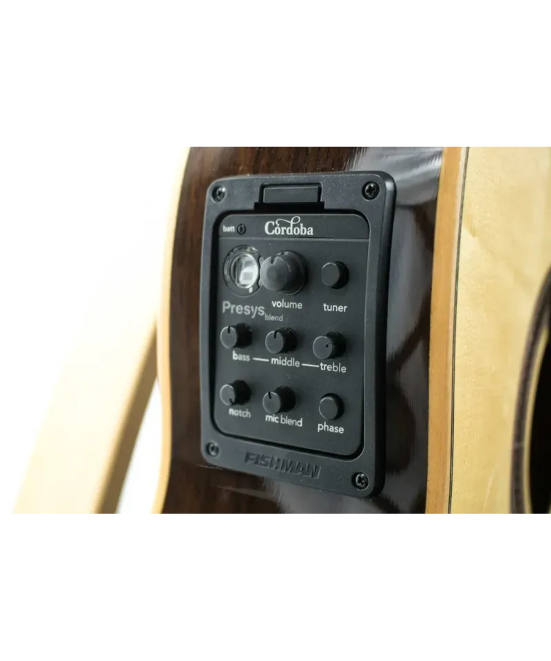Costruita con un top in abete europeo massello, fondo e fasce in cipresso, cutaway morbido e preamplificatore Fishman Presys Blend, la GK Studio è lo strumento per eccellenza e un best seller di Córdoba. Realizzato per il palco, la GK Studio è costruita con una profondità del body, un manico ed una larghezza del capotasto leggermente più sottile di una chitarra spagnola tradizionale.