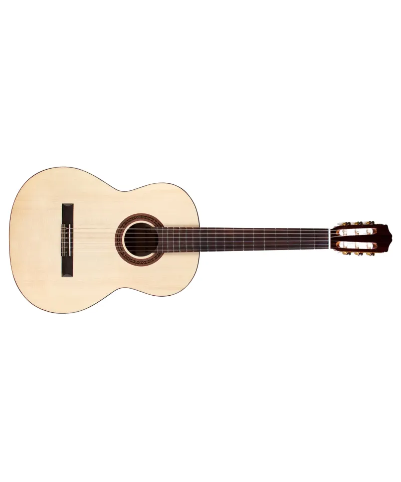 Basata sull'ammiraglia C5 di Cordoba, la C5 Spruce aggiunge una nuova opzione a una delle chitarre preferite dai musicisti. Perfetto come prima chitarra a corde di nylon, questo modello leggero e costruito con un solido top in abete Engelmann e fondo e fasce in mogano per produrre un tono chiaro e potente con un bellissimo sustain. Realizzata a mano nel tradizionale stile spagnolo, la paletta intagliata della C5, la rosetta in legno intarsiata a mano, il binding in Pau Ferro, le corde Savarez e la finitura lucida in PU danno vita a una chitarra che si distingue da tutte le altre opzioni per principianti. Un leggero truss rod regolabile e integrato nel manico per garantire la stabilita. Disponibile nella finitura Natural con top in abete Engelmann massiccio.