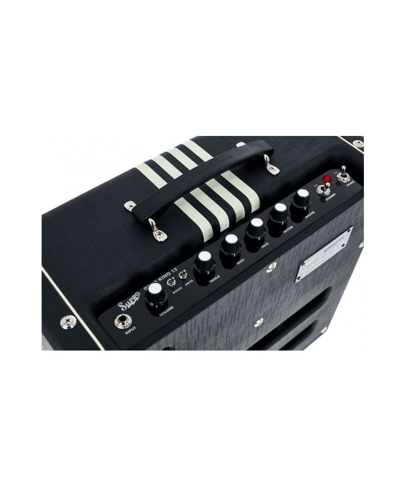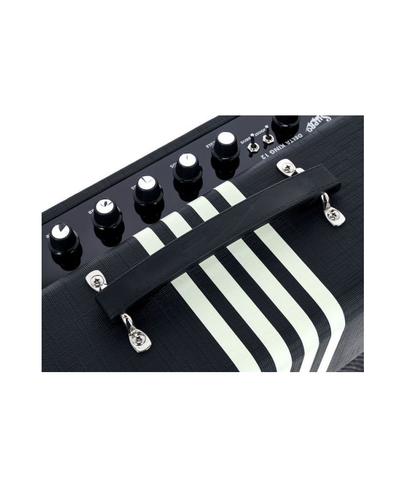 DELTA KING 12 Il combo Delta King 12 cattura il tono dell'amplificatore Supro vintage che ha contribuito a scolpire il suono del primo Rock & Roll elettrico e dell'invasione britannica degli anni '60. Il suo finale valvolare in Classe A single-ended offre le stesse caratteristiche tonali grezze e una straordinaria sensibilit al tocco delle sue controparti della met del secolo, il tutto fornendo 15 watt di potenza valvolare 6L6 attraverso il nostro altoparlante DK12 da 12 pollici personalizzato. Le caratteristiche includono guadagno front-end tramite un preamplificatore valvolare 12AX7, una funzione boost guidata da FET, modalit Pigtronix FAT high-gain, EQ a 3 bande, volume master e riverbero a molla analogico originale personalizzato.